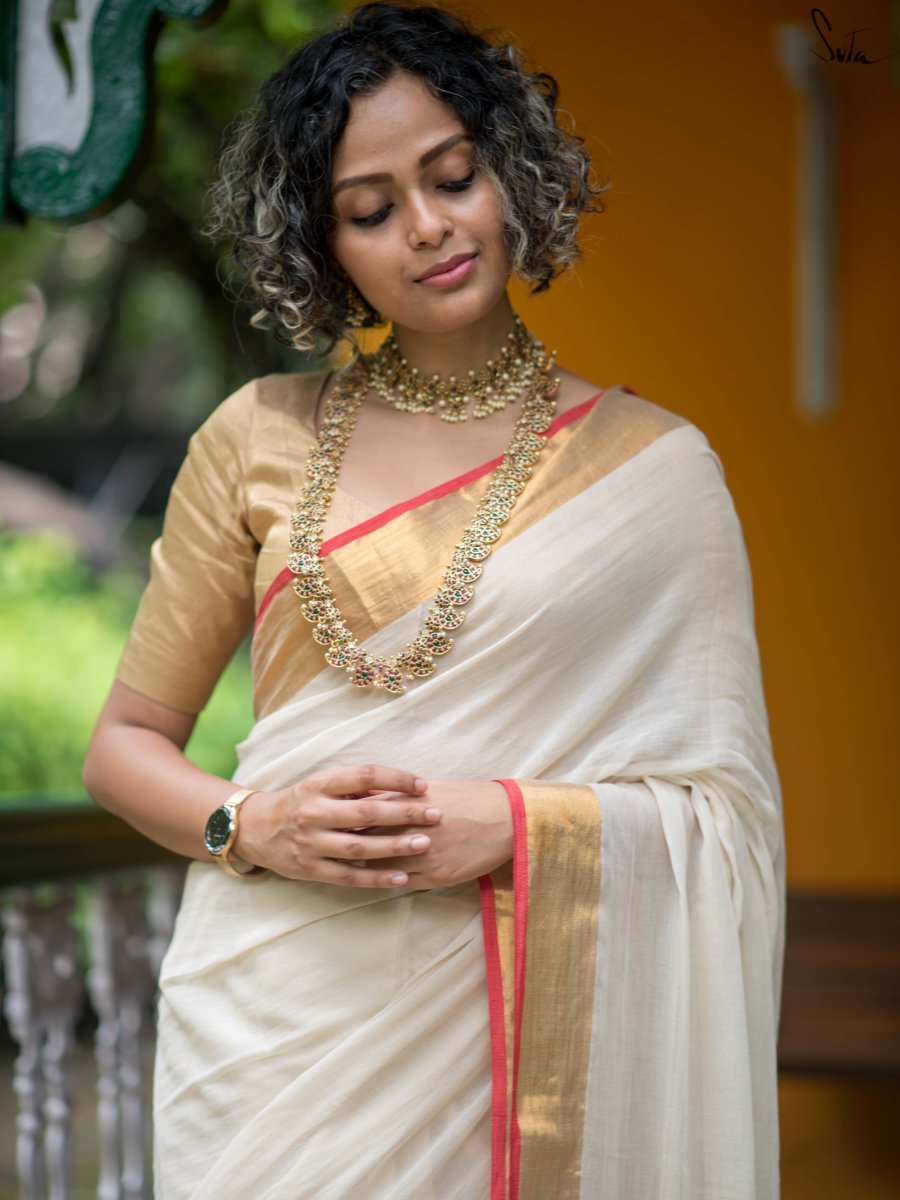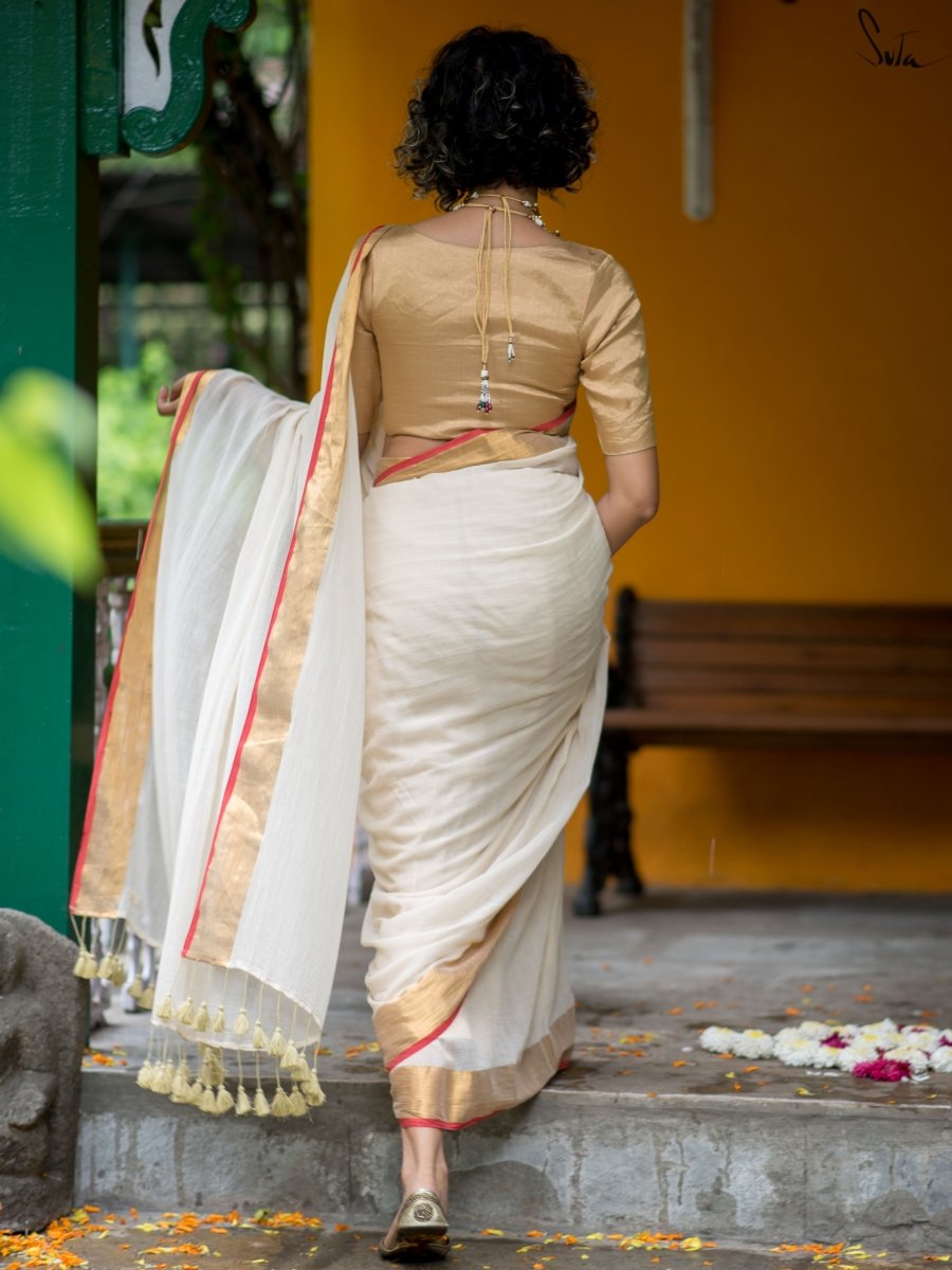 Off White Mulmul Cotton Saree With Zari Border